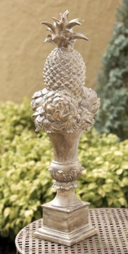 28" Pineapple & Flowering Urn on Pedestal Garden Sculpture Sale