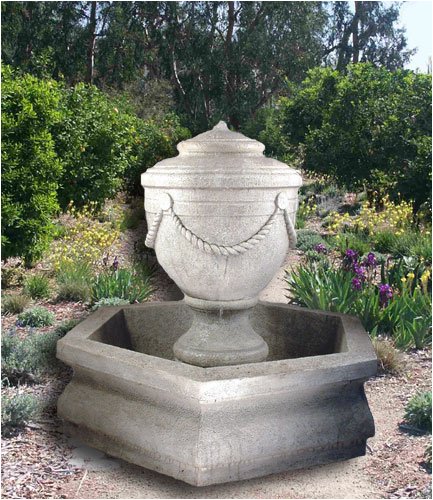 This enchanting urn fountain features a water flow that goes from the top of the urn down the sides back into the hexagonal basin at the bottom. Constructed of sturdy fiberglass, the fountain is built to last. Pump is included.