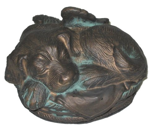This angelic canine is cast in a durable aluminum alloy, finished to look like bronze and felt covered at the base to protect delicate surfaces. It measures 6 inches wide x 6 inches long x 4 inches deep.