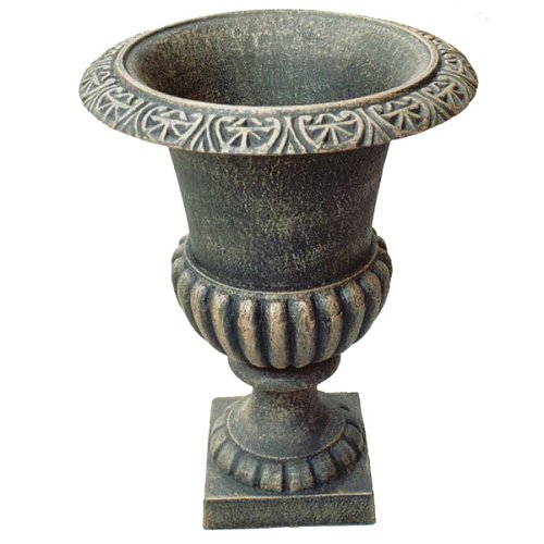 - The bucket-style urn is made of cast iron with an antiqued bronze powder-coat finish and features a flower pattern