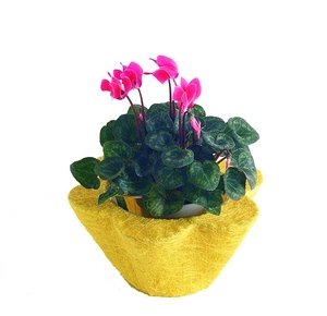Made of sisal with a plastic liner. Holds a 6" pot.