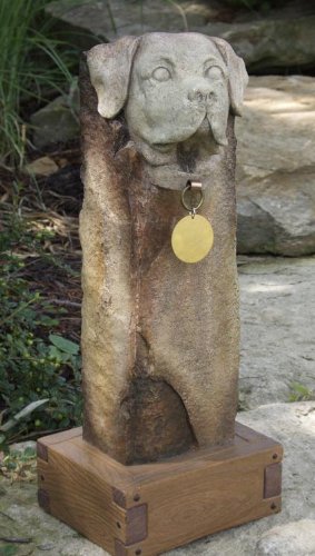 These handsome and artfully sculpted memorial breed statues are cast in weather resistant resin that looks like stone, with a compartment to place your special pet's cremated remains.